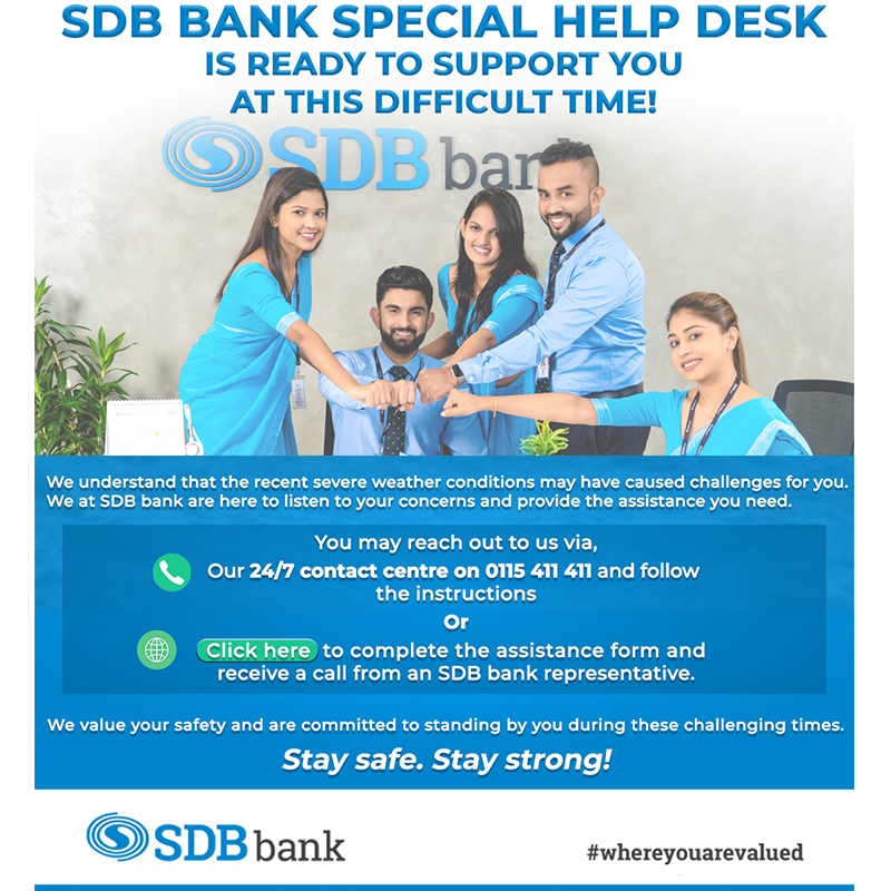 "Welcome to SDB Bank, your Sri Lankan ally in realizing dreams. At SDB bank, we stand beside entrepreneurs, with a special focus on empowering women, and SMEs. Our approach combines financial expertise, digital accessibility, and eco-conscious banking to cultivate a more sustainable and prosperous future.